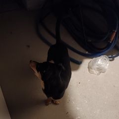 Найден пёс молодой, чёрный с подпалым окрас, похож на таксу. Ошейника и бирок нет. Забежал во двор арамиль, 8марта. Желательно быстрей найти хозяев, тк он любопытный и озорной, пока весь дом не разнес