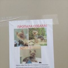 Пропала собака. Йорк. Мальчик. Откликается на имя Боня. 14. 11 выбежал из дома по адресу пр. Строителей 1, без ошейника. Шерсть средней длины. Окрас у корней - черный, по длине - серебристый. На пузе родинки.