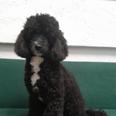 Пропал Пудель по кличке Пьер Чёрного окраса с белым воротником На бежевом ошейнике есть номер и имя пса.