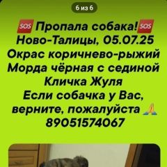 Пропала собака, кличка Жуля. Просьба нашедших или кто знает где находится собака-обратиться по телефону (Вознаграждение гарантируем)