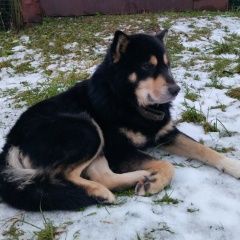 Гулял 2 дня по переулку Кирова, 1день отсутствовал, сегодя пришёл (21. 12. 25) Экстерьер акиты, окрас овчарки,