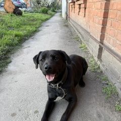 Найден черный лабрадор с ошейником на Каляева в Краснодаре