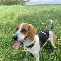 КРАСНОДАР ПОМОГИТЕ Потерялась собака ЮНА р-н Немецкой деревни 23 апреля вечером при прогулке побежала в поле за зайцем. Собака породы гончая (похожа на Бигля) Контактная не кусается. Была в сером ошейнике с синими и красными полосками. Кто обладает какой то информацией или видел просим придержать. Окрас: белый с черными и рыжими пятнами ВОЗНАГРАЖДЕНИЕ Для связи..
