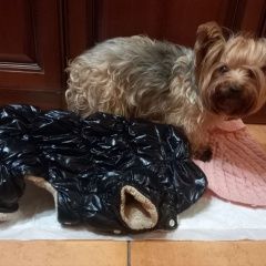 Найдена собака 20. 02. 26 Йорик, Девочка Комбинезон черного цвета и розовый свитер. Ул. Бочкова, 8, метро Алексеевская. Звоните ..