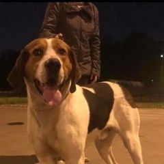 Найдена собака в ЮЗАО, вечером 11. 05. 18, на Ленинском проспекте, 82-86, между улицами: Крупской и М. Ульяновой ( в парке около катка). Собака охотничья, по внешнему виду похожа на русскую пегую гончую. Крупная,..