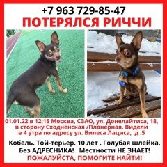 Москва, 31декабря, в районе Марьино пропал молодой кобель, похож на овчарку, но мелкий, где-то по колено ростом, уши стоят. Был в ярком синем ошейнике. Дружелюбный, любит детей ( в семье маленький ребёнок). Откликается..