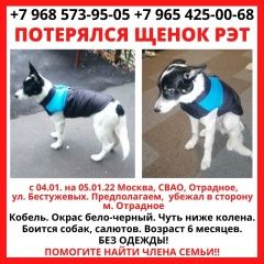 Добрый день Потерялась собака Москва, улица Тёплый Стан (район Тёплый Стан) Высотой по колено, черно-белая, в голубой накидке в красной шлейке Зовут Лесси, 4 года, девочка Убежала в парке (ландшафтный заказник Тёплый..