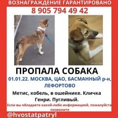 Москва, Лефортово - 01. 01. 22 около 19 часов возле дома по адресу Госпитальный вал 5/18 сбежал годовалый беспородный бело-рыжий кобель по кличке Генри. Был замечен позже вечером в том же районе, но убежал до приезда..