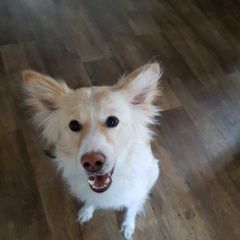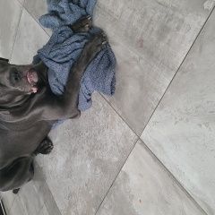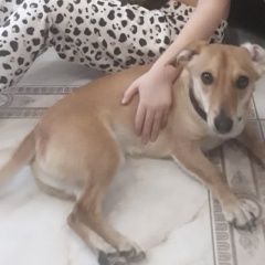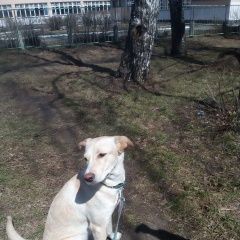 Девочка, 1 год, палевого цвета. похожа на лабрадора, но морда тоньше и комплекция худее. На морде серое светло-серое пятно расходится от носа на правую сторону. На правой лапе, на запястном мякише порез заживший.