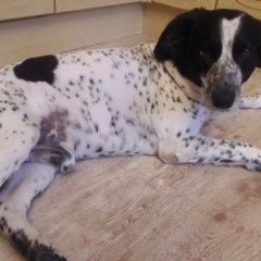 Потерялся кобель метис. Возраст 6 лет. Кличка Рич. Потерялся 30. 09 в первой половине дня в лесу Новосибирского сельского района в районе между селом Каменка и Раздольное. Не боится машин. Белый с черными пятнами. На..