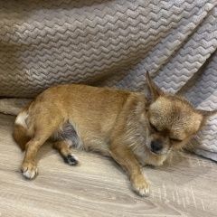 Найдена маленькая собачка в районе Сириуса возле отеля Богатырь. Собачка ухоженная, видно что домашняя. Очень уставшая, спит