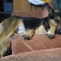 Нашли собаку в районе Суздальского ш, овчарка, с ошейником, мальчик, находится по тлф..